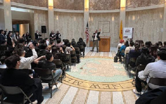 Luna President Dr. Edward Martinez was one of several individuals who spoke to 250 students as part of NM MESA Day at the Legislator on Monday, Feb. 13.