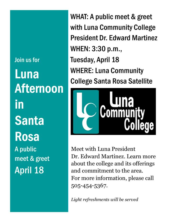 Meet and Greet with Luna president scheduled in Santa Rosa on Tuesday, April 18