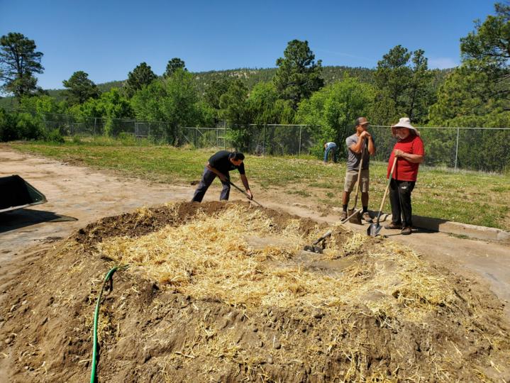 Luna employees took part in making adobes on campus on Friday, June 16.