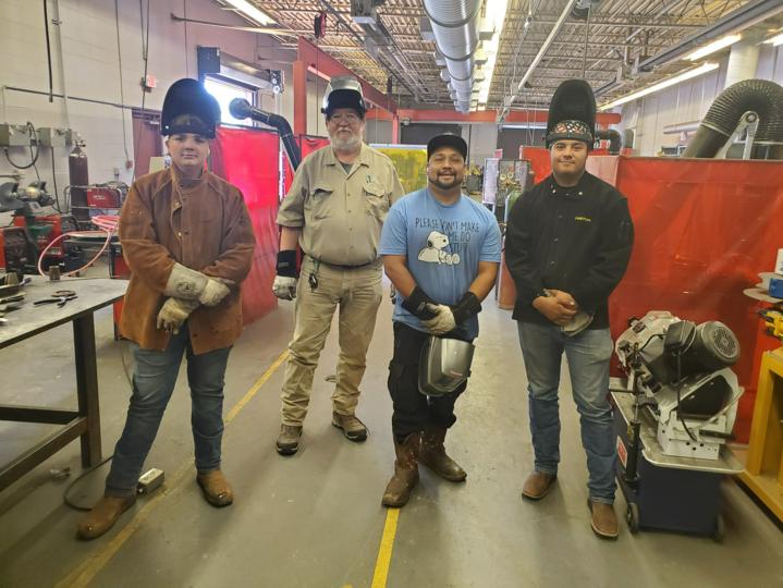 Luna welding students Marco Salinas, Jaime Olivarez and Elijah Romero are part of a Saturday class taught by instructor Gene Martinez.