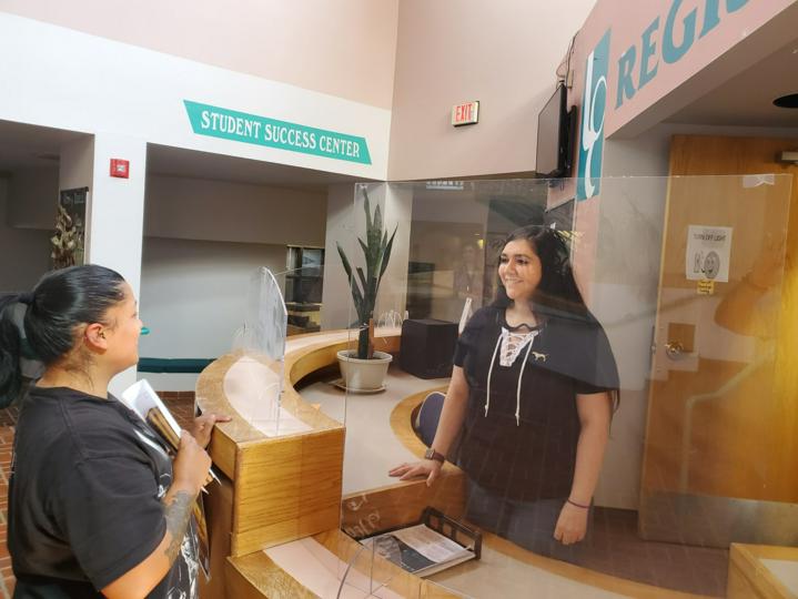 Judy Garcia, a return student from Las Vegas, meets with Luna’s Associate Registrar Angelique Arguello recently. Luna will begin its fall semester on Monday, Aug. 21 and the last day to register is Friday, Aug. 28. The fall class schedule is available at luna.edu.