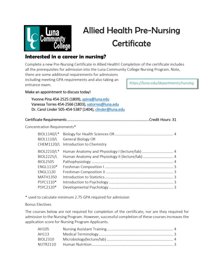 Get your Allied Health Pre-Nursing certificate at Luna