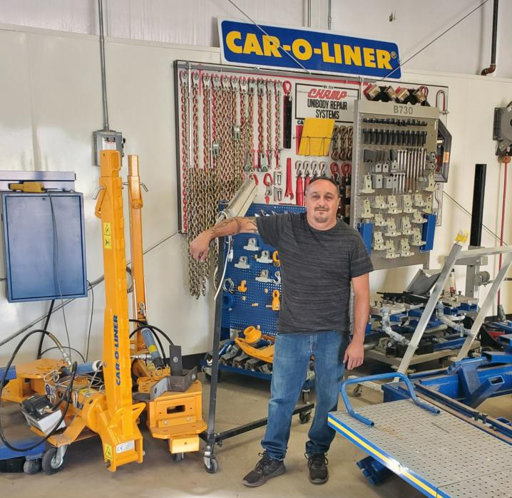 Dominic Garcia teaching several automotive collision repair classes this semester