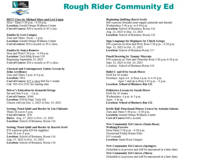 Rough Rider Community Education classes
