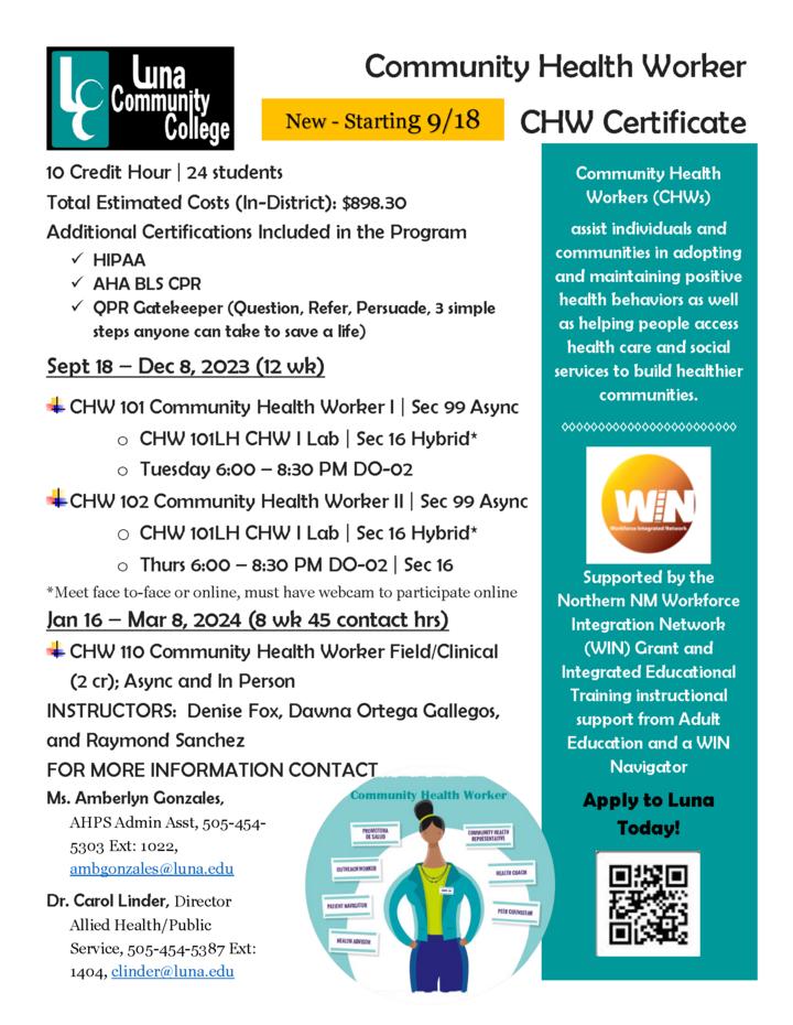Community Health Care Worker classes start on Monday, Sept. 18; sign up today!