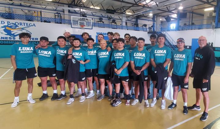 Luna’s baseball team takes a moment for a team photo after a workout.