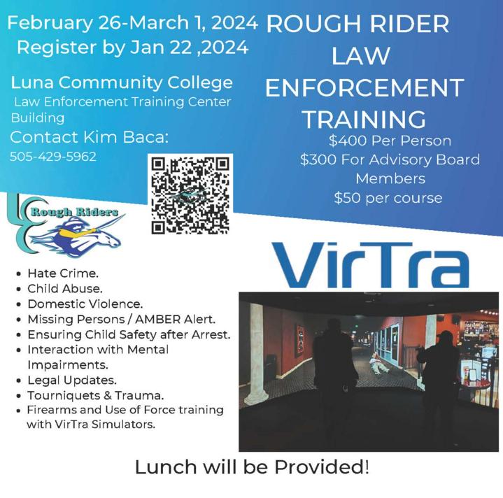 Rough Rider Law Enforcement Training scheduled for Feb. 26 to March 1; register by January 22