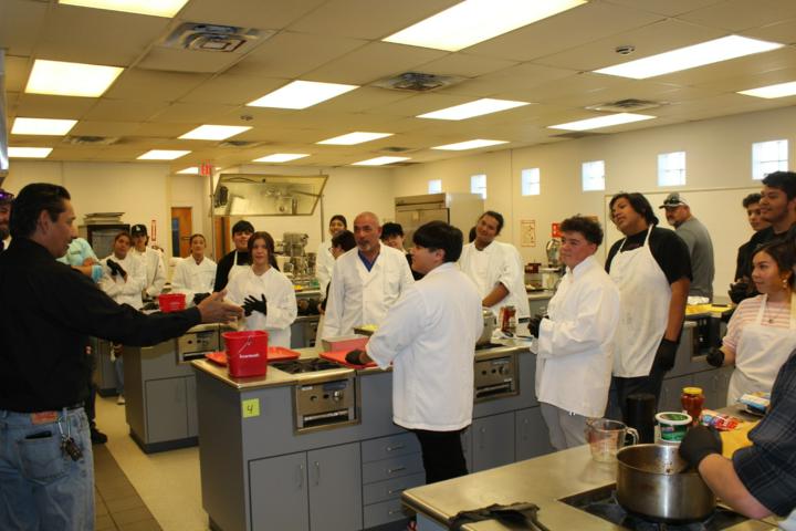Luna President Dr. Edward Martinez speaks with Santa Rosa High School students on Friday, Nov. 3 at the college. Santa Rosa High School food science teacher David Lueras brought his students to use the college’s community kitchen.