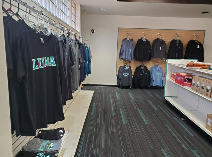 Luna employee Ron Duran and Luna student Ryan Rice are pictured at the Luna Café and Bookstore, recently. The Luna Café is open from 8 a.m. to 4:30 p.m. Monday through Friday and closed from 1 p.m. to 2 p.m. Among the items in the Café are coffee, breakfast burritos, pizza, soda, lemonade, hot dogs, hamburgers, chips and candy. The bookstore recently got a new shipment of Luna apparel such as hoodies, t-shirts, caps and Polo shirts.