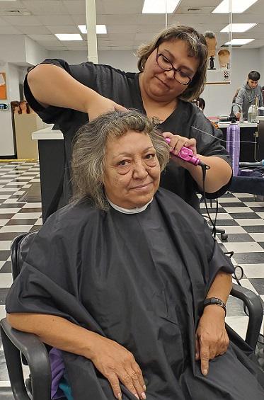 Angelica Baca, a second year Luna cosmetology student, is pictured cutting Elaine Baca’s hair on Wednesday, Jan. 17.