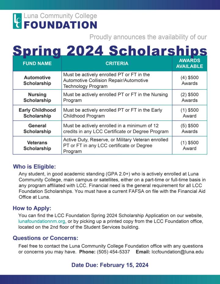 Luna Community College Foundation 2024 spring scholarships