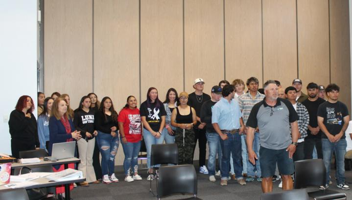 Luna’s softball and baseball teams were recognized at a recent Board of Trustees meeting. Each player introduced themselves to the BOT and included where they were from.