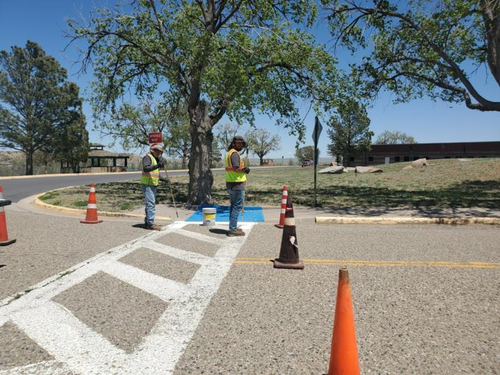 Physical plant employees Leroy Gonzales and Michael Garcia work on painting the Luna campus recently. Physical plant employees have been working diligently to get the campus ready for Saturday’s 2024 graduation ceremony.