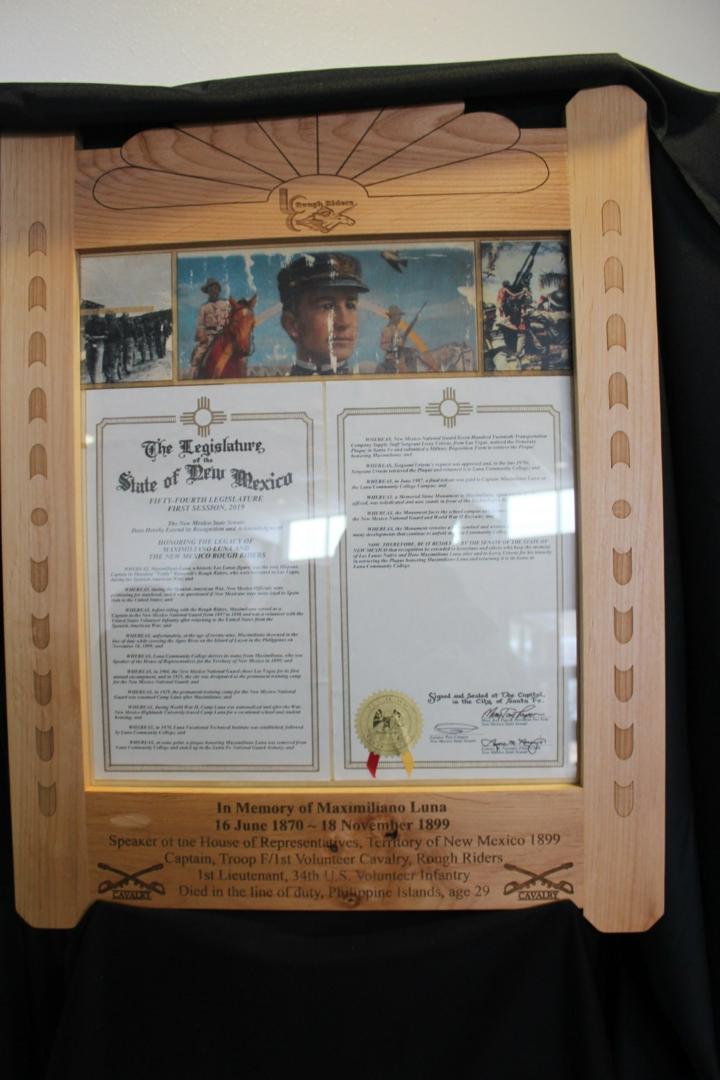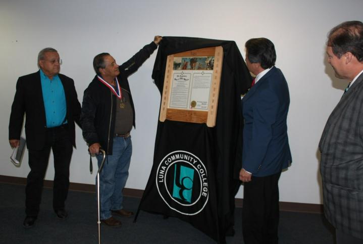 The event culminated with an unveiling of a framed proclamation in honor of the college’s namesake Maximiliano Luna. Vietnam veteran Leroy Urioste and Dr. Campos were on hand for the unveiling of the proclamation, for which a special frame was crafted by Luna’s David Flores.