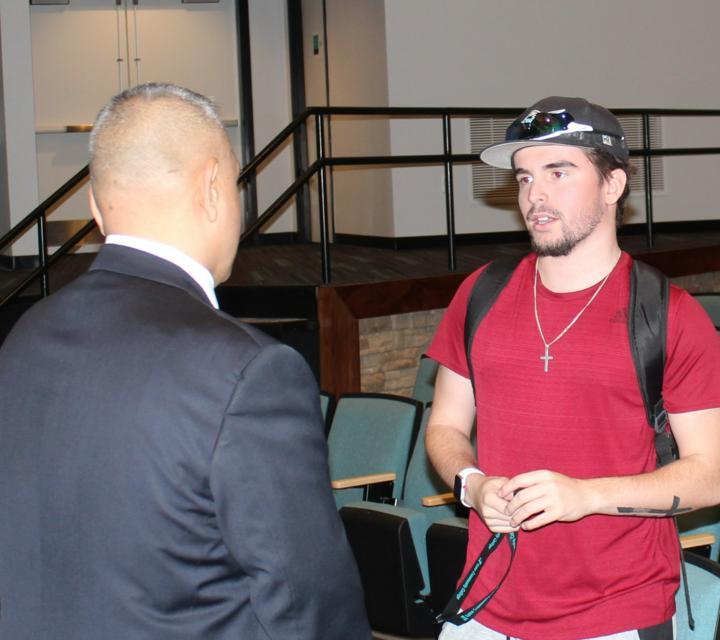 Hernandez spoke to several people, including Luna students, after his talk.