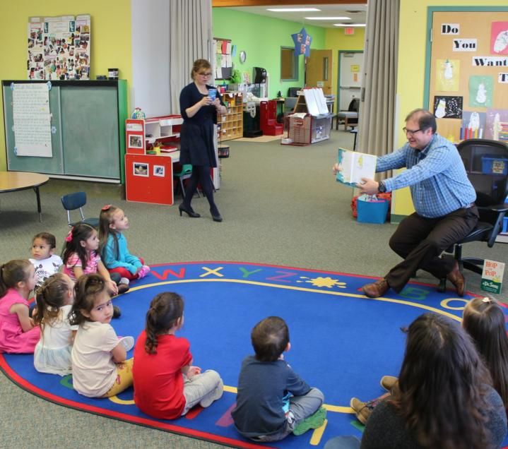 Dr. Rael and Dr. Patterson read to Luna preschoolers