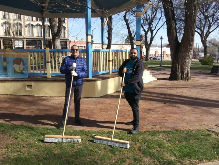 Luna Student Senate President Mario Romero (right) participated with Las Vegas Mayor Louie A. Trujillo in a citywide cleanup in commemoration of Earth Day on the morning of April 22. Student senate has been one of several Luna student contingents to assist in community service projects this school year.
