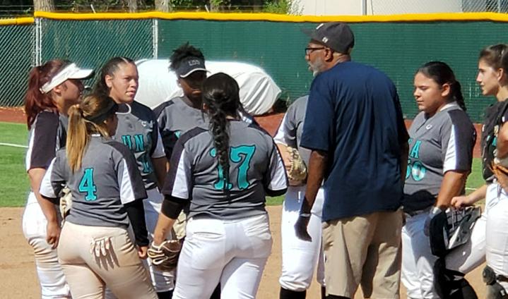 Luna softball Coach Steve Wallace provides instruction to his team during a scrimmage on Saturday. For more on Luna softball, please call 505-454-2580.