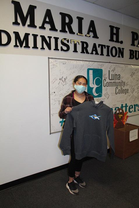 Luna students enjoyed salsa, chips and a soft drink as the college opened its game room on Tuesday, Nov. 9. Students were also eligible to win two Luna hoodies from the bookstore. One of the winners, Bailey Douglass, is pictured with her Luna hoodie sweatshirt.