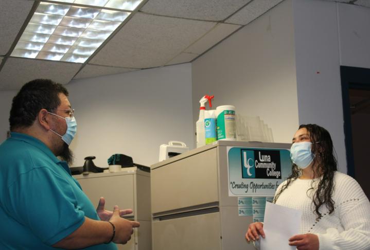 Luna freshman Celina Silva (right) completes her admission file with admissions specialist Martin Garcia. First-year students can apply online at LUNA.edu under the Apply Now link and contact the Admissions office, 505-454-2550, admissions@luna.edu, or in person to complete the admissions process.