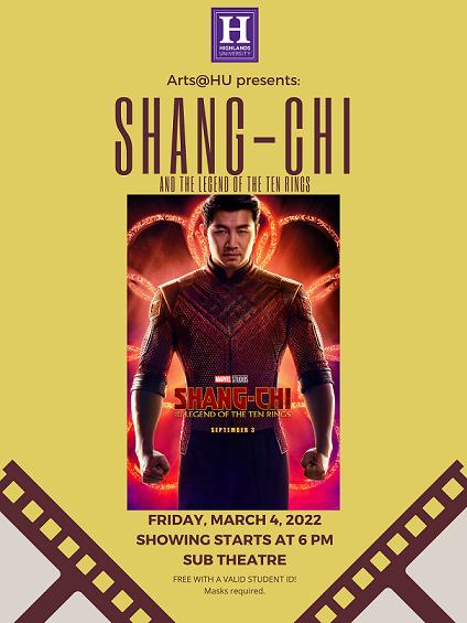 HU will be hosting a movie at 6 p.m. tonight and on Friday, March 4 at the Student Union Building theatre. Free water and popcorn will be provided. No outside food or beverages will be allowed. Masks will be required.
