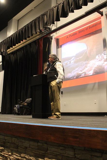 Dr. Gregory Cajete, a Native American educator, scholar and author, spoke on the topic of **“Health, Community, Indigenous Foods and Herbs in Northern New Mexico,” in a public presentation on Wednesday, April 13 at Luna’s Media Education Center Auditorium.