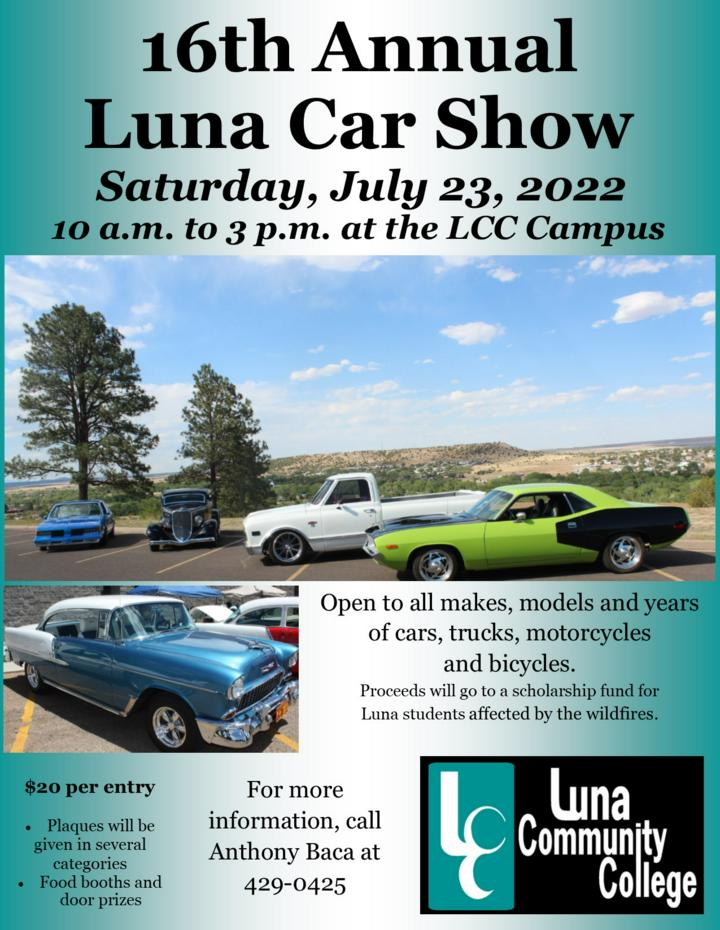 Luna will host a Car Show from 10 a.m. to 3 p.m. on Saturday, July 23. It is a free community event. For more information, call Anthony Baca at 429-0425.