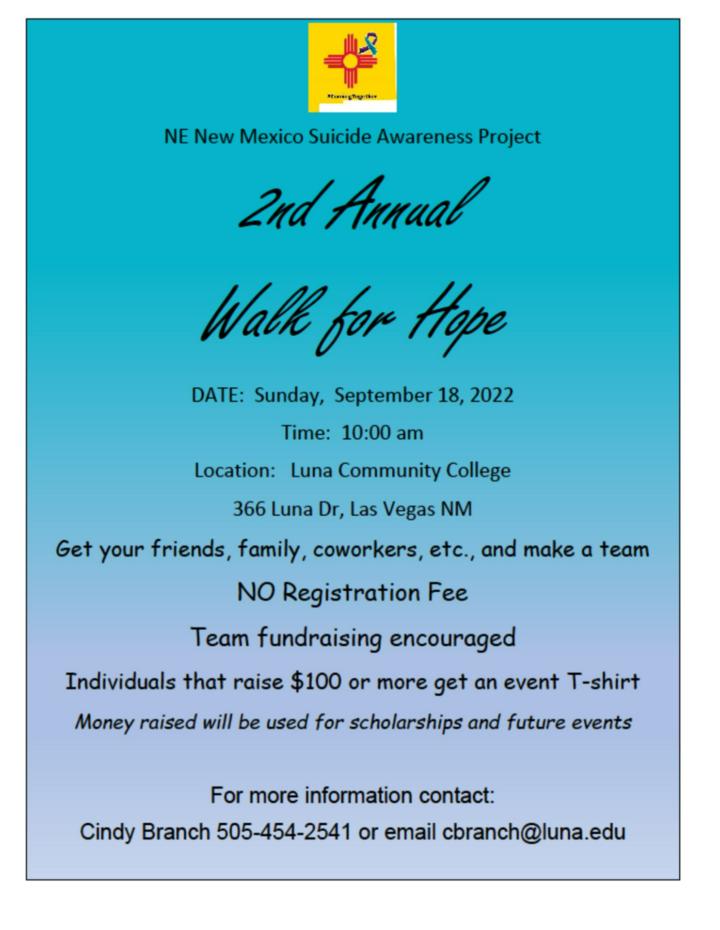 Second Annual Walk for Hope planned at Luna for Sunday, Sept. 18