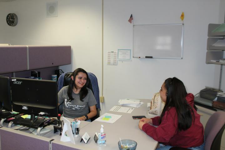 Luna Community College student Jodi Calderon, a native of Ft. Collins, talks with admissions counselor Sonia Castillo, recently.
