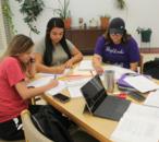 Luna Community College students do some group studying Monday in the humanities department. Pictured (clockwise, l-r) are: Angel Romero, Lindsey…