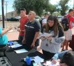 Luna’s Martin Garcia talks to high school students during a New Mexico Education Council College Fair at Robertson High School…
