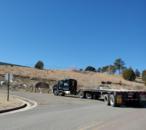 A Luna CDL student takes a left hand turn uphill onto the college campus after a day of road training. For…