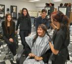 Luna Community College cosmetology student Julia Archuleta gets a haircut from senior student Victoria Lara while Desiree Trujillo, Mariah Herrera…