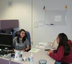 Luna Community College student Jodi Calderon, a native of Ft. Collins, talks with admissions counselor Sonia Castillo, recently. Spring classes…