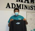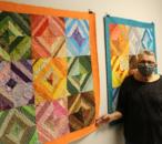 Luna quilting student Gloria Mejillas shows off two crib quilts made during the summer session. The quilts will be donated…